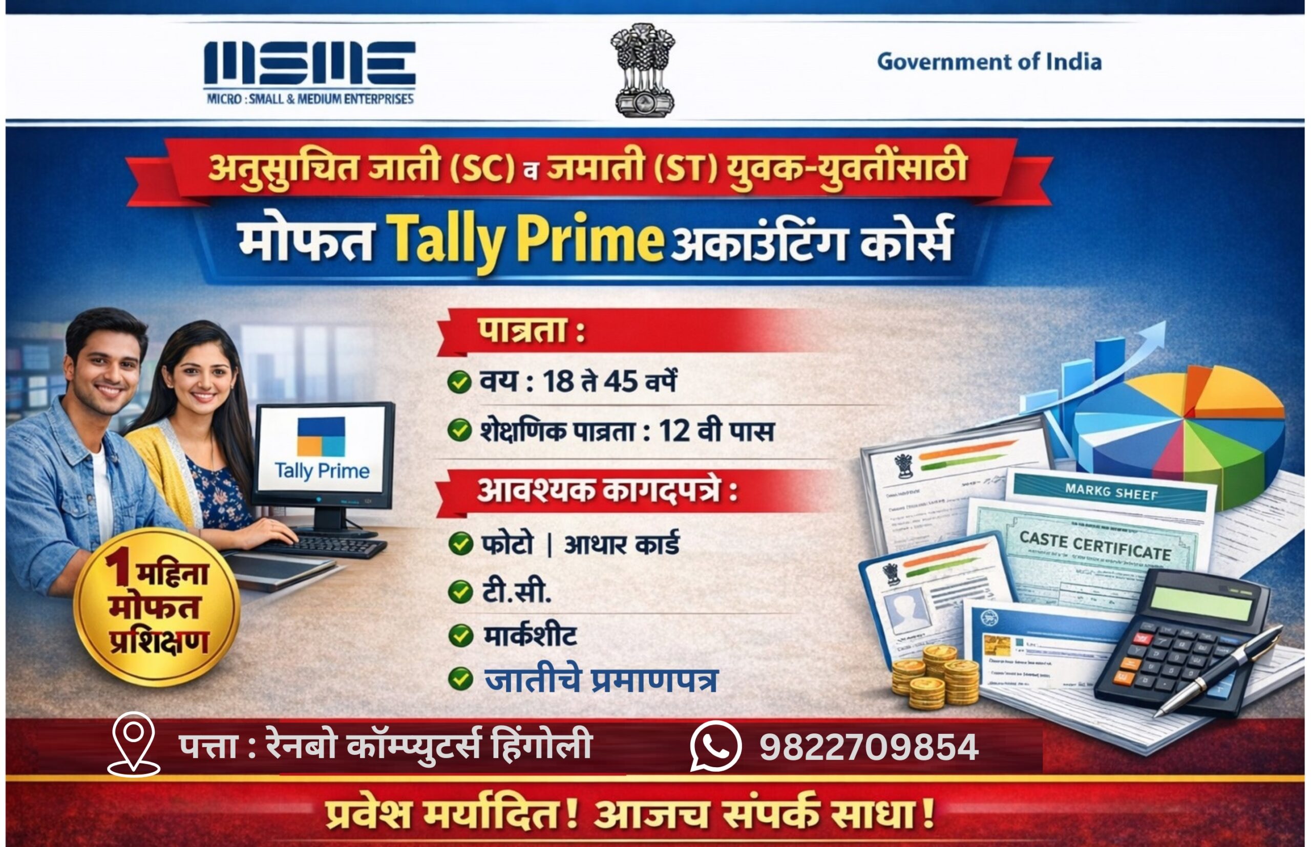 "मी Rainbow Computers, हिंगोली येथे Tally Prime कोर्स पूर्ण केला आणि आज मी Physics Wallah, Ramakrishna City, Akola Bypass, Balsond, Hingoli येथे शिक्षक म्हणून काम करत आहे. रेनबो कॉम्प्युटर्स येथील उत्तम मार्गदर्शन, प्रॅक्टिकल ट्रेनिंग आणि आत्मविश्वास वाढवणारी शिकवणी यामुळेच मला हा यशाचा टप्पा गाठता आला. मनःपूर्वक धन्यवाद Rainbow Computers! "
