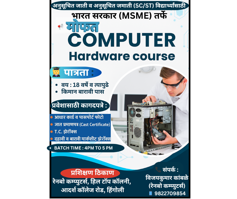 Rainbow Computers, Established In 2002, Hingoli is a Study Centre of Yeshwantrao Chavan Maharashtra Open University (YCMOU). Also we are authorized learning center of Maharashtra Knowledge Corporation Ltd. (MKCL). We are the authorized CSC academy by E-Governance CSC.